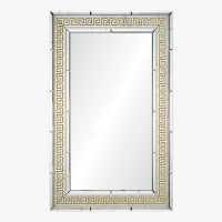 Antiqued mirror framed mirror with hand painted gold inlay. Wood backing in satin black finish.